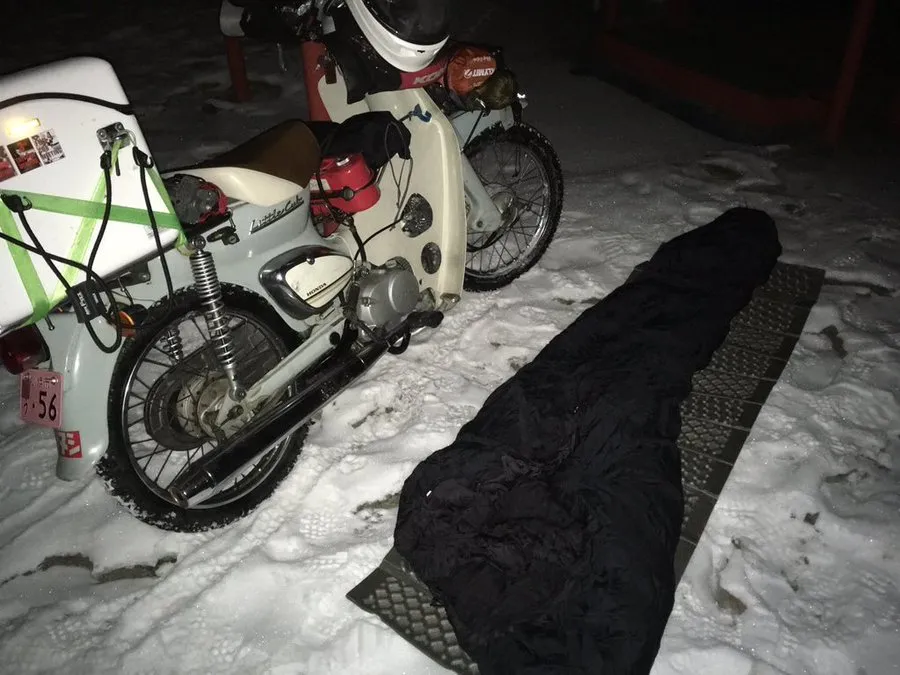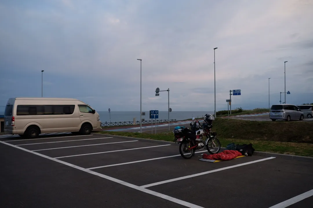 このときは500kmほど雨の中を走り、風邪を引いていていたこともあって適当な場所に寝てしまったと反省。初めて職質を受けた。