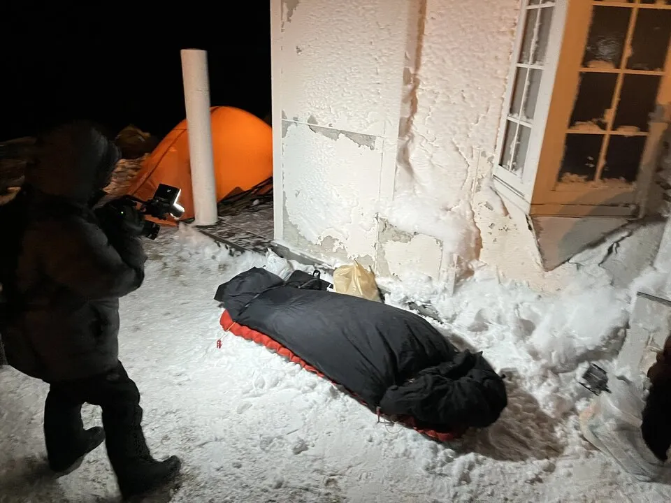 宗谷岬において野宿する場所として、トイレの横は風よけになって良かったが、もう少し足元に雪の壁を作るなどの対策をしたほうがよい。
